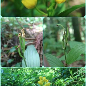 5/31 新津丘陵 ⬆️⬅️⬇️キンラン(金蘭)ラン科キンラン属の地生の多年草。環境省、新潟県ともに、絶滅危惧Ⅱ類(VU)に指定。➡️ ギンラン(銀蘭)ラン科キンラン属の地生の多年草。 ✌️✌️✌️😃😃😃✌️✌️✌️ ⬆️⬇️ この日の金さん‼️。⬇️ 立派な株です。この場所のコノ娘達は、毎年、たくさん花を付けます。こんなにまとまって出る場所は、ココしか知りません。普通は一本立ち、二本出ていればラッキーです。多年草なんだけど、次の年も出てくれれば、またラッキー。小さい株を見つけても、翌年は出ない事がほとんどです。ココの娘達は毎年出てくれて良い娘達です。 ⬆️ コレだけ元気な大きな株で、花が開いても、コレくらいです。関東や西日本の方々の投稿を見ていると、結構、パカッと開いた写真が多いのに、少々うらやましく思います。とは言え平開はしませんけどネ。 5/23に投稿した二週間前の⬅️金さんと、➡️銀さん。銀さんは⬆️の写真の娘です。しっかり結実して、増えてほしいと考えています。 ✌️✌️✌️😃😃😃✌️✌️✌️