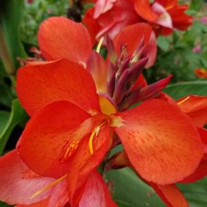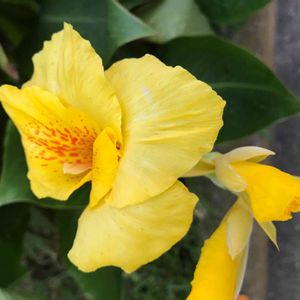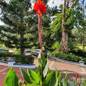 こんにちは👋😃 春に苗木植えました🎵カンナです🎵 何回も咲いたから葉が少し傷んで来ました🎵💖