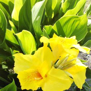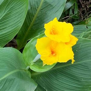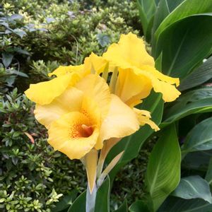おはようございます👋😃☀️ 今日のお花カンナ🌿💛🌿 明るい黄色に元気を貰って今週も頑張っ👊😆🎵 いつもの散歩道で🌄😃🌄