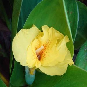 何ですか?葉っぱが大きく蘭みたいな花が咲きました