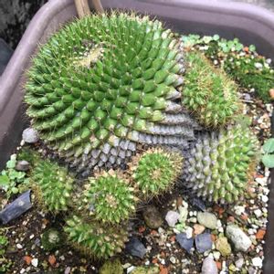 おはようございます 関東は雨が降ったりやんだりです。 御近所マダムの依頼で植え替えしたサボテンが子株を沢山作っていました。せっかく広くしてあげたのに〜と思いますが、元気な証拠で安心です😊