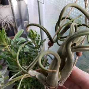 チランジア カプトメデューサエ🌿 お花が咲いた記憶はないけど、いつの間にか小かぶが大きくなってました~ 今までベランダでずーと下がりっぱだったので、今朝から温室内へ移動させました~😖💦🙏