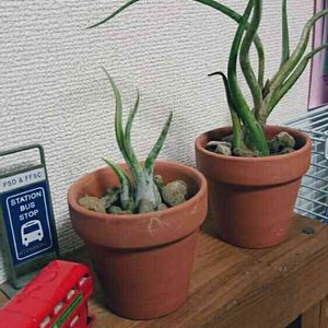 うちのエアープランツちゃん。 堂々としたキセログラグラフィカの後ろに100均でゲットして大きくなってきた子達がひっそりと😊😊