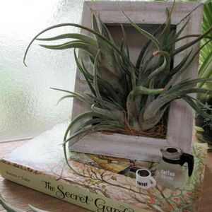 チランジア・カプトメドゥーサエ♡ プリプリしていて、銀色のトリコームが綺麗な可愛い子(*´▽`*) お水をあげるときに、トリコームが沈んだ色合いに変わるので、楽しんでいます♪ 基本、うちでは、外で育てていますが、たまに、こうやって家の中に入れて飾っています♡ 一緒にバーネット著『The Secret Garden』『秘密の花園』も( ´艸`)♡ メアリー、ディコン、コリンの3人の子どもたちが、閉ざされていた花園を蘇らせながら、自分自身も癒され成長していく過程が大好きです☆