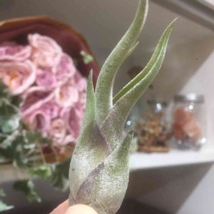 気がつけばちょっと大きくなったんじゃない?チランジア♡ 肌触りしっとり。いい色してるし真ん中がピンピンで元気そうで何より(*^艸^)クスクスw カプ太郎と大きさ比較(*´д`*)