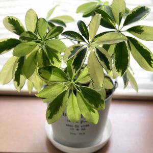 4月にお迎えした 斑入りのシェフレラ💚 我が家で唯一の観葉植物です🪴 東南の出窓で今のところ 機嫌よく過ごしてくれています😊 成長が早くて 中心から小さな🖐️のような葉が 出てきて、それが大きくなると また次のチビっ子葉っぱが…♪ つやピカで可愛いです😍