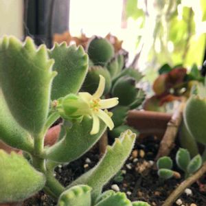 挿木にしていた熊童子が花をつけました。かれこれ4年くらい育てていますが初めて見ました。親苗ではまったくそんなそぶりなかったのに。