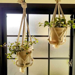 100均で買ったロープと鉢でハンギングプランター作ってみました。 雑な私にしては上出来です😊
