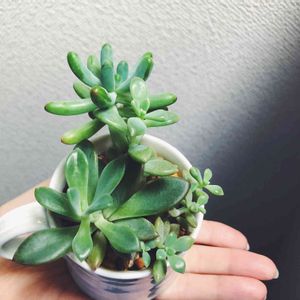 6/17に寄せ植えした3つ。小さくてあまり使ってない角田淳さんのカップを思い切っておろしてしまった! そして、植えた時に葉がたくさん取れちゃって心配、と日記に書いてあった^^; 窓辺で艶々育ってくれてます。