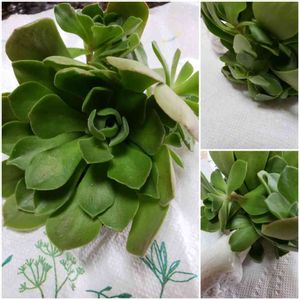 先ほど届いたメルカリの勝利品✨アエオニウム🍀レモネードさん 沢山の子株達☺️綺麗なグリーンにテンション上がってまぁ~ス⤴️🍀