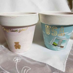 見て~❣️ 幼なじみのとまとちゃんがハンドメイドのリメイク鉢をプレゼントしてくれました🙆 初めて作ったと思えない仕上がり✨ 私のイメージで作ってくれたんだって❣️ 嬉しい~☺️ もともとセンスのいい器用な彼女。私に無いものたくさん持ってるの🍀 大切にするからね🙆 ありがとう~❣️😆💕✨