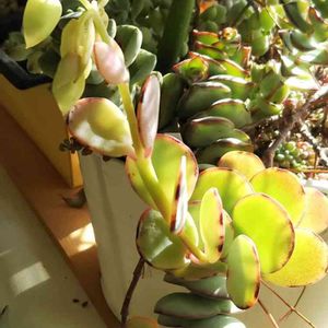 「クラッスラ」としか書かれていなかった100均多肉😅 この夏日焼けして ちょっとお肌が荒れ気味(?)ですが、 新葉のグラデーションは なんともキレイです😊
