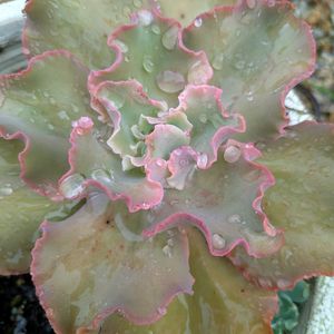 エケベリア メリディアン フリルがええ感じやわぁ〜❤結構大きいエケさんで、重たかったようで、茎が折れて倒れていたので、昨日、土に挿しておきました💦無事根がでますように〜!