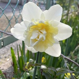 我が家の別庭 隣りのマンションの花壇に 大きな水仙が 咲きました🌿🤍