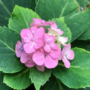 近くのマンションの花壇で、小さなピンク色💗の紫陽花が咲いていました❣️😃