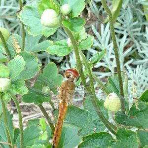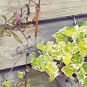 おはようございます🍀 昨日夕方からすごい雷雨⛈️ アイビーと薄羽黄蜻蛉 この前にも雨が降ってたから 羽をかわかしていたのかな?