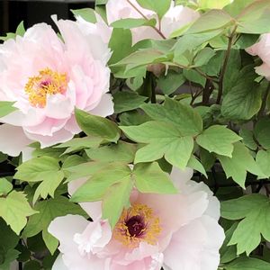 ①ー③牡丹🌳ボタン🌸🌸🌺 よそ様のお庭 大輪の花♡ 薄紙でつくったよう‥😍 薄桃色と濃い赤ピンクの二種 艶やかな日本の美‥って感じかな🤗 今日は曇天☁️ 庭に枝垂れる黄ばら🟡🟡を見ながら午後はのんびりお絵描きTimeにしよう😚😆