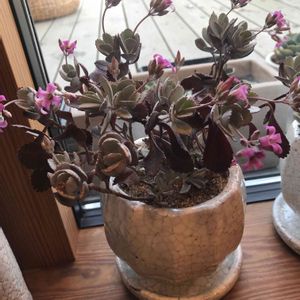 葉っぱが白っぽくてピンクのお花が咲いています 多肉ですよね? お店が混みすぎて名前を確認できなかったの