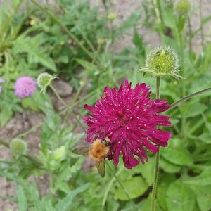 ❤赤花松虫草💜 花蜂が 嬉しげに飛んできた セイヨウマルハナバチでないのが とっても嬉しい😃💕