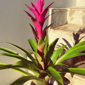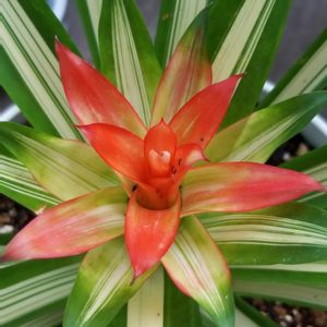 今日のお花 グスマニア おはようございます🌞 今朝は良い🌞 グスマニアってずっとこのままであんまり変化しないですね。 でも、横から新しい株が出てきました。