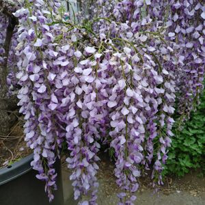 藤 複数枚投稿 5枚 この公園の藤は鉢植え 開花鉢にクマバチが飛び交って。 大きな黒いクマバチ、危害を加えなければ、悪さはしないと。 黒龍藤の様な濃い紫の藤も咲いて。 甘い香りでいっぱい。