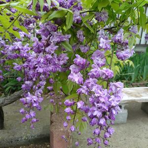 鉢植えのフジの花が咲きました マメ科マメ属の落葉性ツル性花木 和名「フジ(藤)」 英名「Japanese wisteria」 別名「ノダフジ(野田藤)」 花言葉「優しさ」「歓迎」「決して離れない」 「恋によう」「忠実な」 人気の投稿に入りました25.04.25 ありがとうございますm(_ _)m 小庭にて 25.04.23