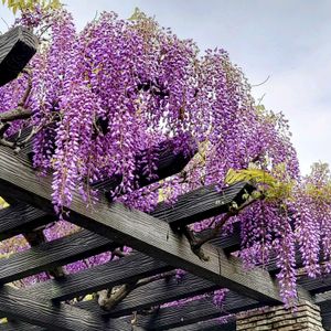 フジ 小さな公園の藤棚に咲く藤 昨年は花が付いて無かったのに、今年 は、遠目にも分かる程の花付き。 立派な鉄骨造りの藤棚。 ④棚の下からも藤が垂れて。 ツルがたくさん絡んでるのも見られる ”2025年の藤、みどりのまとめに“ 時間のある時のぞいてね。