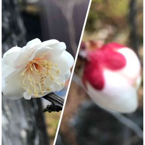 庭の梅の木に花が咲きました! 前から見ても 後ろから見てもオシャレさんです❣️