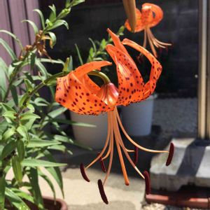 おはよう☀️ございます❣️ 上:今朝 下:昨日の午前中に咲き始めて夕方にやっと開いた地生えの百合 鉄砲ユリかな?バッキューン🔫