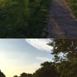 雨あがりの朝〜♫ 届いた短い手紙〜♪ 早朝散歩❣️ 爽やか木々もイキイキしてる🌳 写真下の木は何だろう❓ この歌知ってる人は💖をポチる☝🏻️(笑)