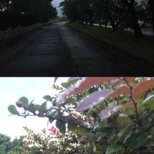 早朝散歩❣️知らない人が2人も写り込んでた(-。-; 上の人は何してるんだろ❓ この木〜♫なんの木〜♪ ❓❓❓