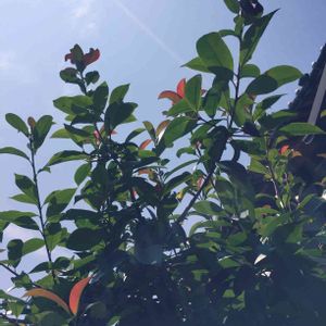 ベニカナメモチ:通称アカメは、春にも枝先が紅くなるけどこの時期は成長期でまた紅くなってます❣️ 他の木は剪定したけど晴れ待ちで剪定し残しておいた☀️