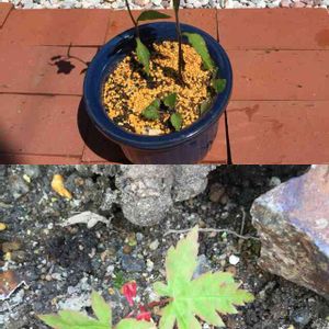 上:ホタルブクロが開花‼️ 手が掛からないんだけど蔓延るので鉢植えで。既に鉢の中で地下茎で芽を出している⚠️ 下:もみじの赤ちゃん発見❣️ 大きく育ってくれるといいなぁ✨