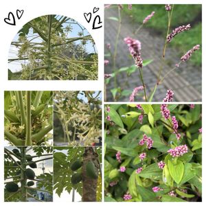 今日のお花🌸イヌタデ パパイヤのお花 先ほど投稿したイヌタデ赤くて違う花のような気がするので もう一度、こちらをupしました♪ 左は、パパイヤの花🌼 初めて花はみました❤️