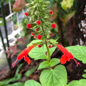 サルビア・コクシネア おはようございます。 丸い蕾がギュッと可愛いサルビア❤️ こぼれ種で毎年咲いてくれます。 暑さに強く、丈夫で手間いらずですが、耐寒性があまり強くないので、一年草扱い。 お庭を明るく彩ってくれます。 お気に入りのお花の一つです。 今日も暑くなりそうです。 大雨警報の出ている地方の方、気をつけてお過ごし下さいネ〜🌿
