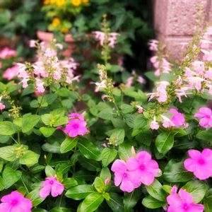 玄関先の寄せ植えも元気出てきました😊 ・サルビア コクシネア🌸 ・ニチニチソウ🌸