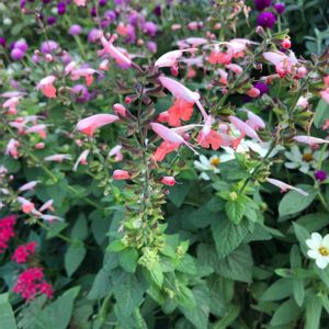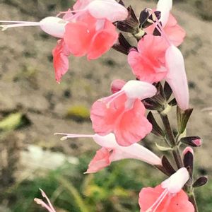 この花は「サルビア・コクシネア(SALVIA COCCINEA )」でしょうか? オレンジがかったピンクもあって素敵でした🌸😊 シソ科 アキギリ属 別名 コーラルニンフ(珊瑚の妖精)
