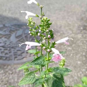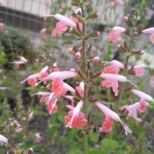 サルビア・コクシネアは花色によって名前が区別されていますが、この花はコーラルニンフ(珊瑚の精の意味)と言います。 花の上の筒部が白(またはピンク) 下唇の色が珊瑚色と言うのが特徴です。 北アメリカ南部・中央アメリカ原産。 シソ科サルビア属の宿根草。