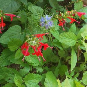 種から育てました。ニゲラは1つだけ、サルビアは種が落ちた所からです🥰