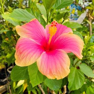 こんにちは🌞😃 ハイビスカス レインボーさん巨大化です。 17.5cm有りました🤗 後ろは、スノーフレークさん斑入りです😊