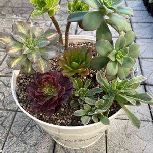 やっとアエオニウムの寄せ植えできたけど配置やバランス難しいなぁ(  ̄ω  ̄ ;)