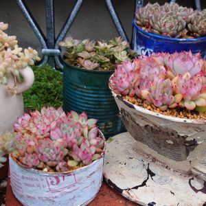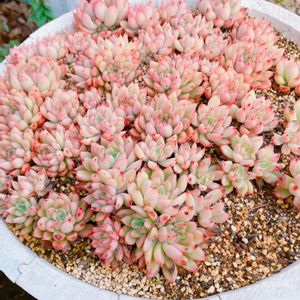 女雛丼♡ お迎えしてから1年半 経過しました🤗💕 1苗の子吹いたベビちゃんを周りに挿して 丼にしました💕 コロンとしてきたけど… もう少しpink💗になって欲しいなぁ🥰