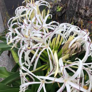 街路樹の脇で浜木綿が満開