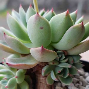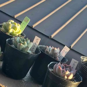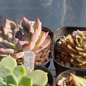 ダイソーで発見‼️ 1つは札に エケベリアって書いてある。 もう1つは札さえない。。。 この子タチ 誰でしょう? 前回 ダイソーから連れ帰った大和錦は いきなり日に当てたから 焦がしちゃった💦 今回は ますは明るい窓辺へ→ かわいくなるかなぁ
