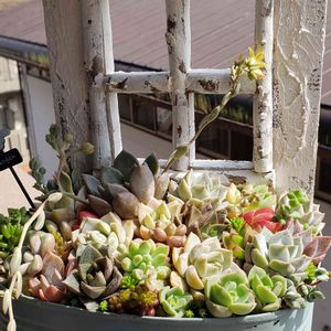 沢山の寄せ植えの鉢から救出し、まだ元気なエケベリア達を寄せ植えしました😆💕💕 結構な重量😱💦💦 ぶら下げることは出来るかしら💦💦 でも、可愛いから😆💕💕 大満足😆💕💕
