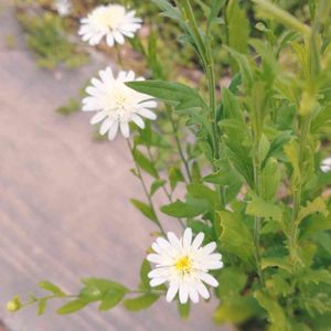 みやまよめな 七変化 カーリメリスとも言うようです。 ヨメナなら強い筈❗と連れ帰りました🤭💦 春から秋に…一重から八重に…白から淡い紫に…と変化するらしいです。 強い宿根草は強い味方❕と 期待は大きいのですが どうなるのかなぁ🤔 🤭🎶