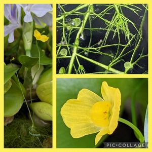 おはようございます🌿 葉は糸状で、わずかに捕虫のうがあります🌿 小さな食中植物です🌿 夏に花茎を伸ばし黄色いお花💛を咲かせます🌿 花友さんの庭の瓶の水の中に咲いていて、見たことがなかったので気になって調べました🌿