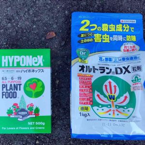 こんばんは^ ^ 今日の買い物。 オルトランDX粒剤と微粉ハイポネックス。 柔らかい黄色花が咲く、バラ*ポラリスアルファが、今年、スリップスの餌食になっておりまして、どうしたものかと考えてました。今まで、スリップスってあんまり見かけたことがなかったのですが、スリップスは、黄色い物に寄ってくる性質があるということを知って、納得。 今まで、黄色のバラが無かったから、ほとんど見たことがなかったということです。 昨年お迎えしたバラ*ポラリスアルファ。一番はじめに咲いた、1つ2つは被害がなかったのですが、その後、たくさん蕾はつけてくれても、うまく咲いてくれず..._| ̄|○ 咲いた花に薬液かけても、花はダメになるだけだし、そもそもスリップスには届きにくいらしいし、オルトランDXをまいてみることにしました。 微粉ハイポネックスは、フォロワーのくろもみじ🍁様が、コメントに書いてくださっていたもの。 暑さ・寒さに強い株にもなるらしく、試してみます。 いきなり、500g購入^ ^;; オルトランDXは、今日まいてみました。 微粉ハイポネックスは、じょうろで水やりするときに使ってみまーす🚿