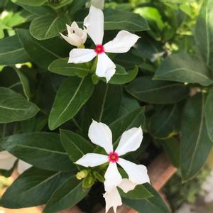 ニチニチソウ はねうさぎ 夏花火に押されてか、余りにも少ない花数に少しがっかり😞 うーん、夏花火が咲き過ぎなんだろうか🤔 頑張れ‼️はねうさぎ💕