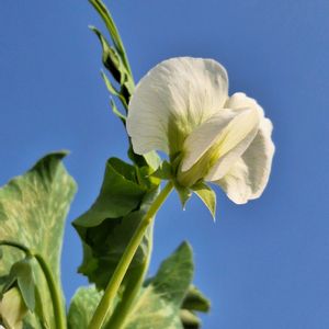 青い空に白い花 スイトピーみたい ふふふ (≖ᴗ≖๑)ʊʊʊ収穫が楽しみ お豆さーん